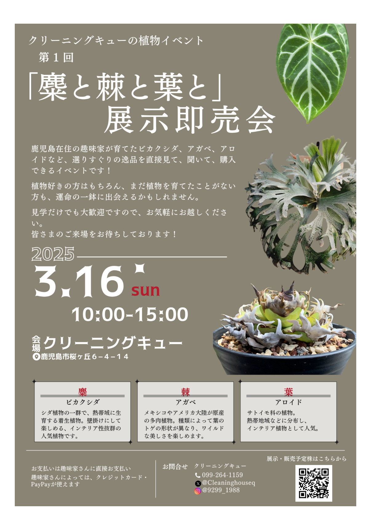 ビカクシダ、アガベ、アロイドなど