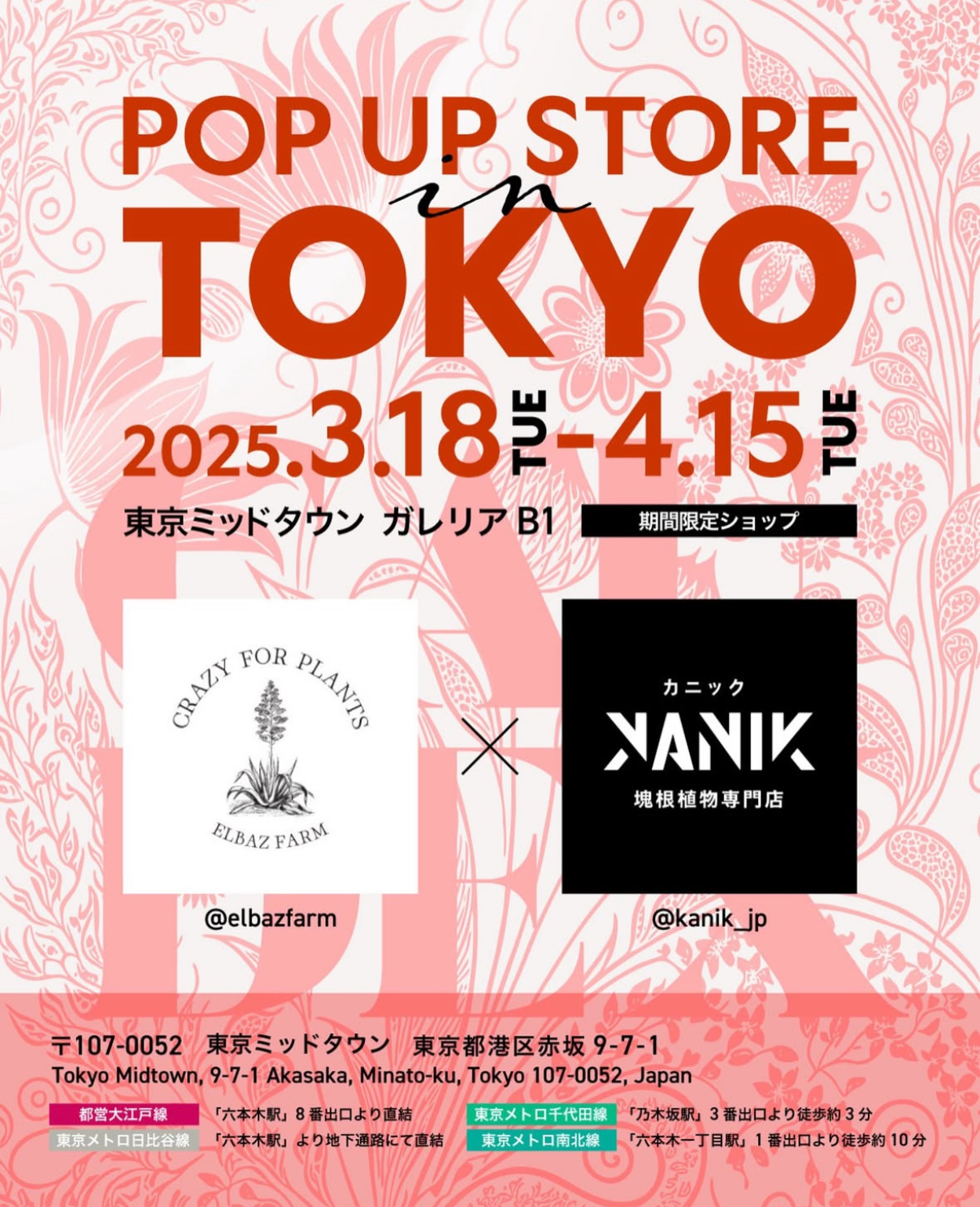 東京の人気スポット東京ミッドタウンにて塊根植物専門店KANIK(主催)とELBAZ FARM(監修)による1ヶ月間の期間限定ショップをオープンいたします。