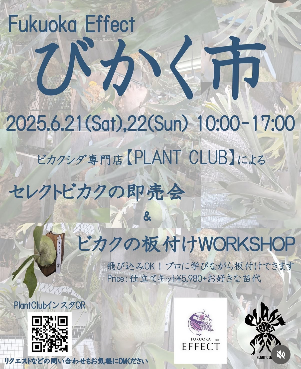 ビカクシダの販売専門店 【PLANTCLUB】 による即売会&板付 workshop開催😆!【日時】2025年6月21日(土)、22日(日)