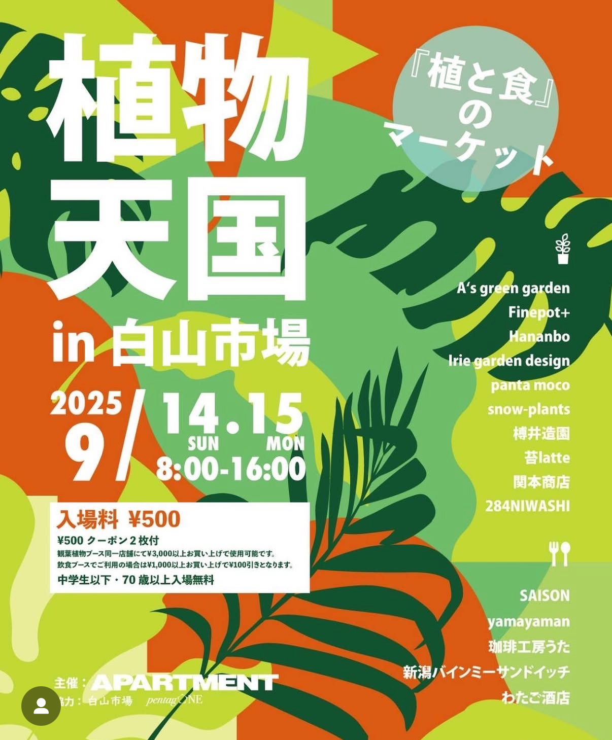 お気に入りの植物と美味しい食事を一緒に楽しんで、ゆったりとした時間をお過ごしください。【植物天国 in 白山市場】